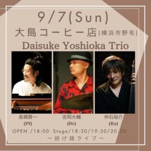 ベースの須川崇志さんは関西にいるときからバンクシアトリオの音源を聴いたりしていて、本当に素晴らしくて憧れの存在でもあるので共演できるのが本当に嬉しいです!!