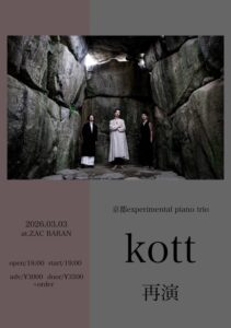 2022年には元jizueのドラマー粉川心の呼びかけにより、岡田康孝、髙橋賢一らと同世代の即興音楽家三人で京都experimental piano trio【kott】を結成。