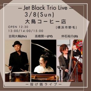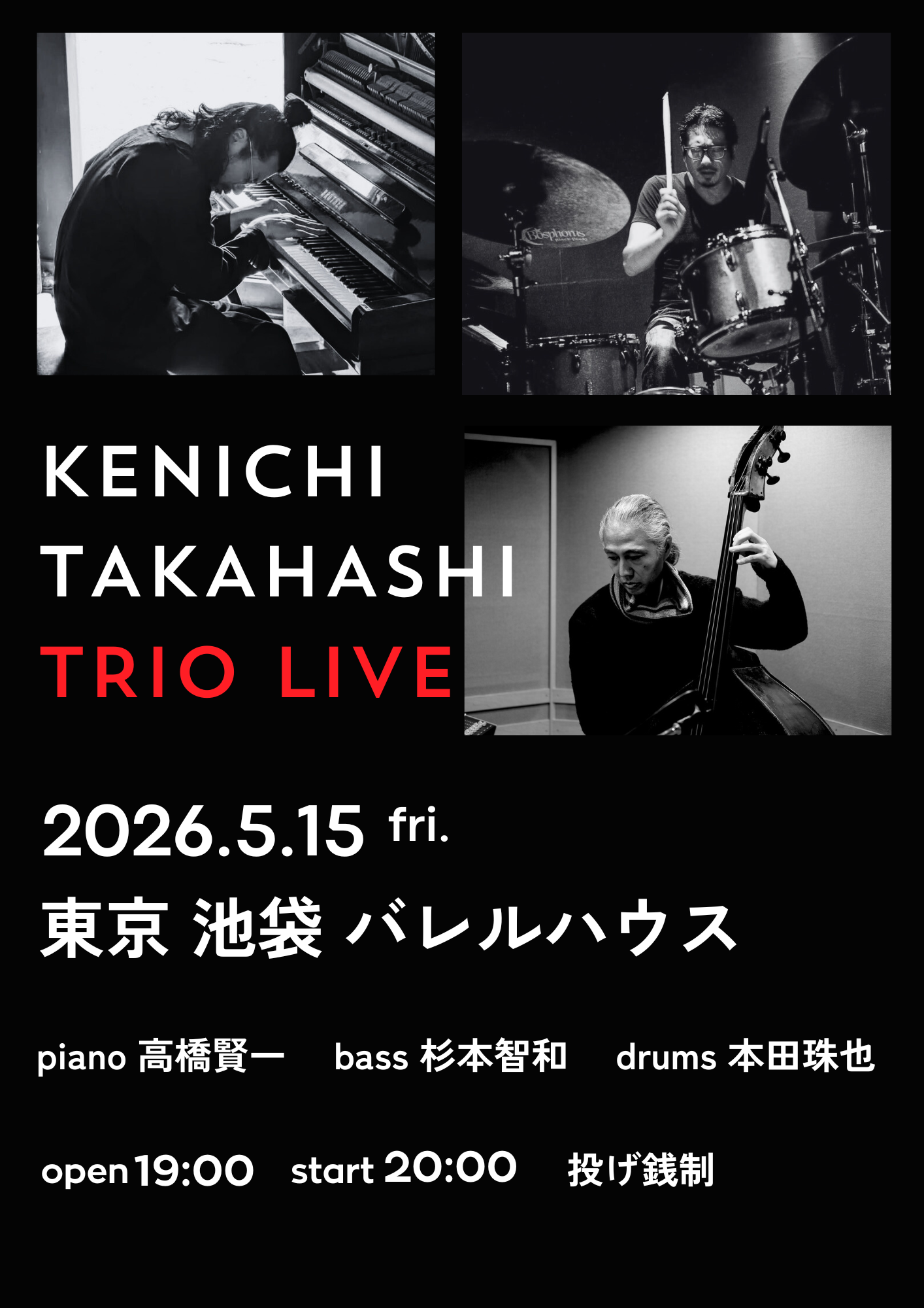池袋バレルハウスにてドラム本田珠也さん、ベース杉本智和さんとのトリオライブが決定しました。