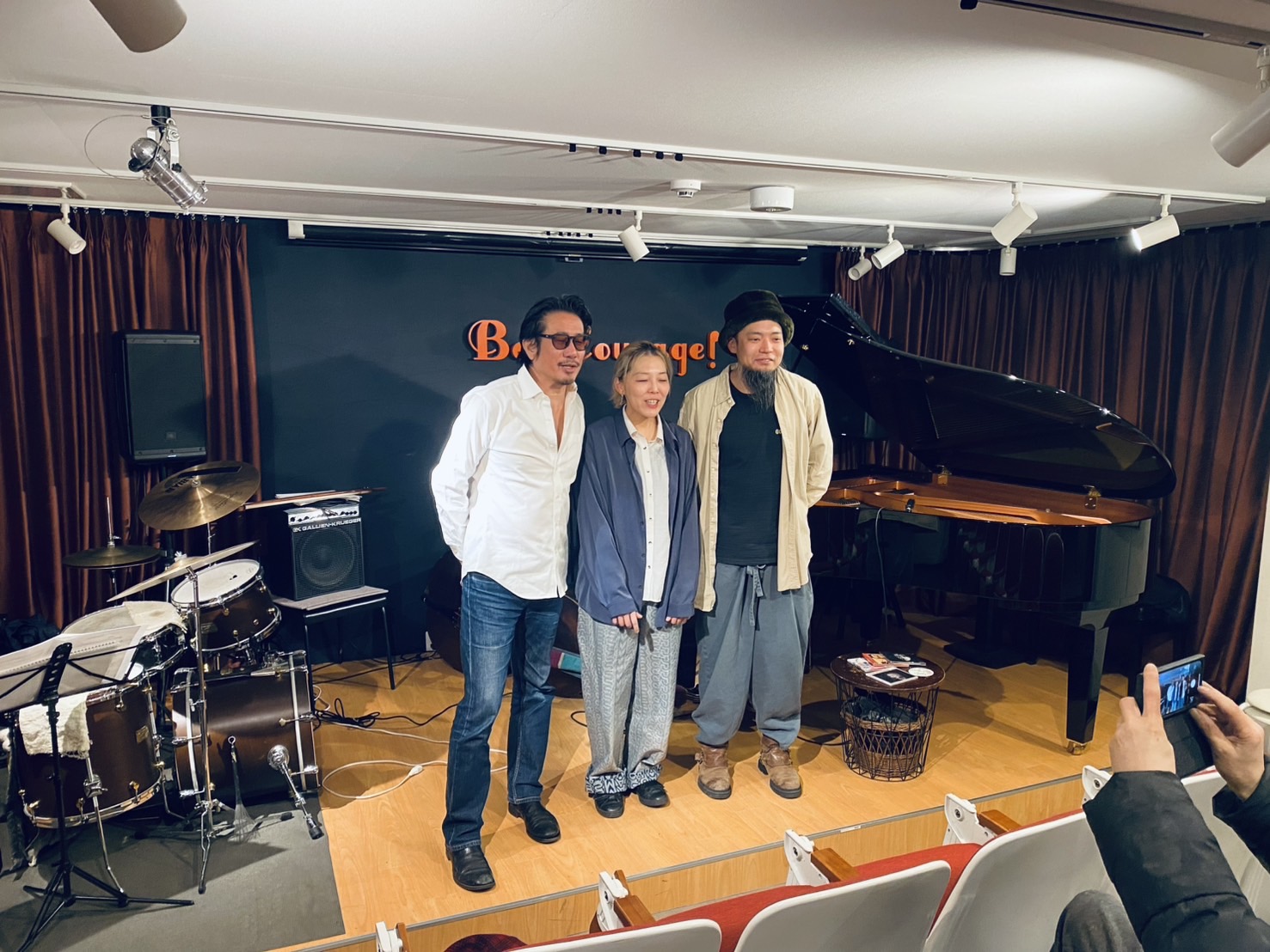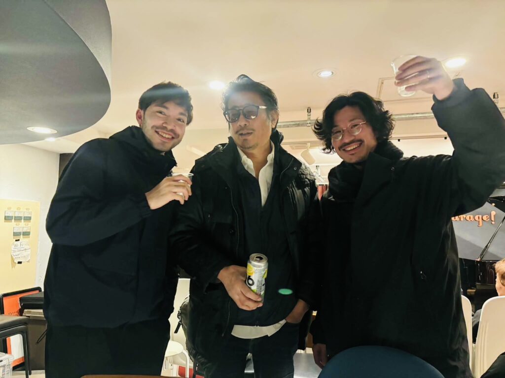 関西で一緒に演奏してるドラムの森下啓くんが来ていて珠也さんと三人で写真撮れたの嬉しかった🌿