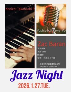 18:30 open|19:00 start|¥2,500(1 drink付)