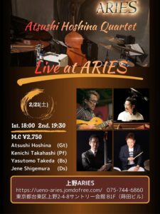 東京上野アリエスでの保科篤志さんクァルテット、とても優しく温かく包まれるような時間。お越しいただきましてありがとうございました。
